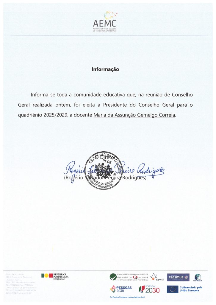 Informação – eleição Presidente do Conselho Geral.