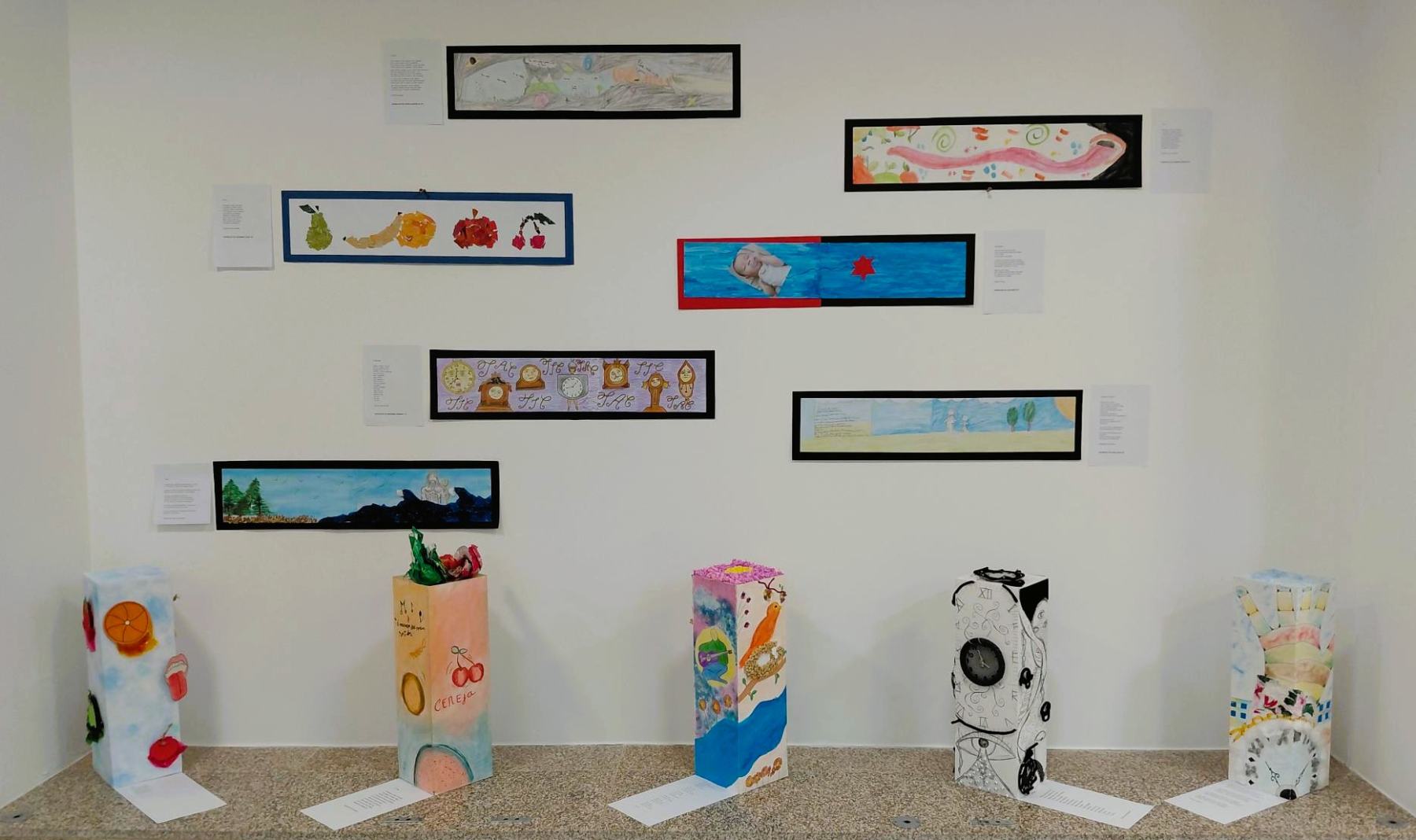 Inspirados pelos textos analisados, os alunos deram forma à sua criatividade através da produção de ilustrações e objetos tridimensionais, evidenciando o trabalho colaborativo desenvolvido ao longo do processo.