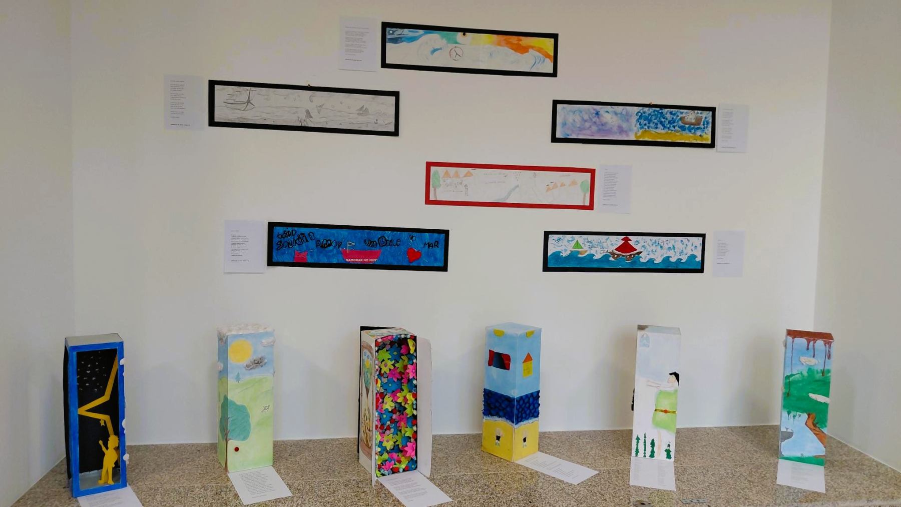 As turmas do 9.º ano já visitaram a mostra artística, que poderá agora ser explorada por outros alunos e visitantes, reforçando a importância da articulação entre arte e literatura no contexto educativo.