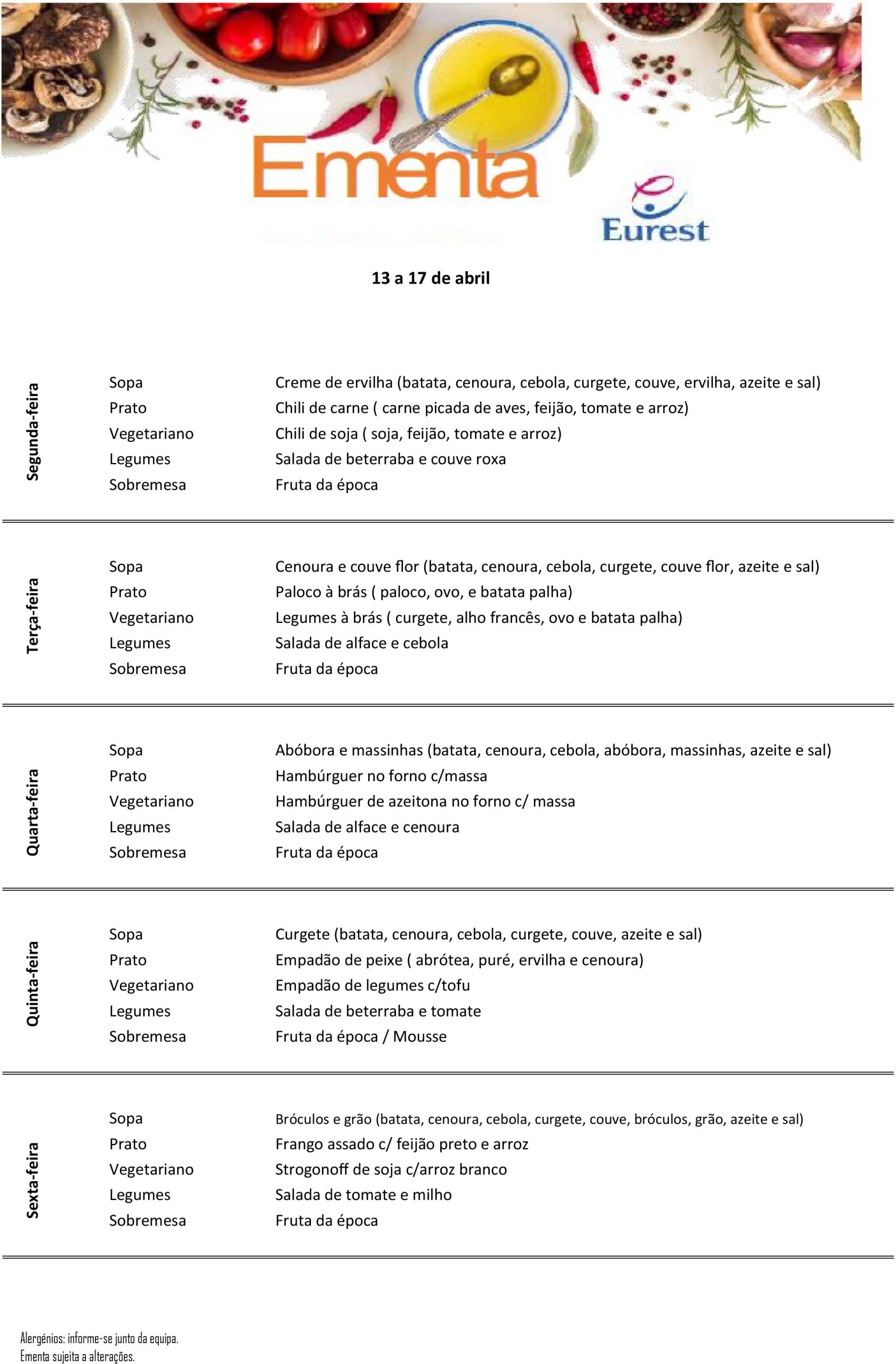 Ementa Semanal 13/04 — 17/04