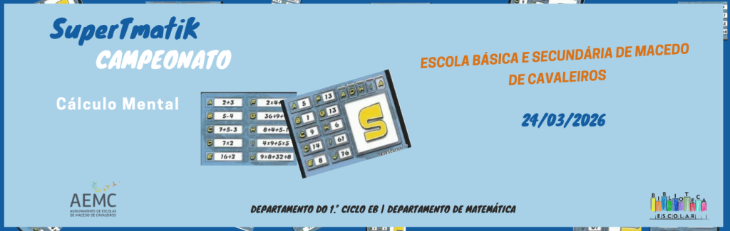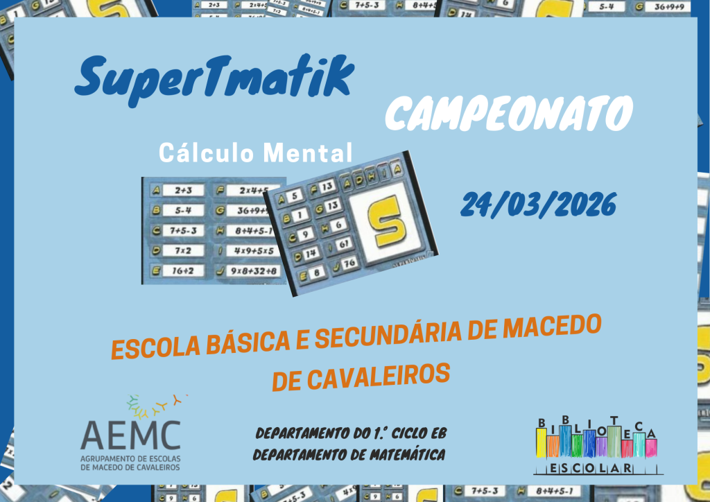 No próximo dia 24 de março, a nossa escola irá realizar o Campeonato Escolar SUPERTMATIK – (Cálculo Mental), uma atividade que desafia os alunos a colocarem à prova a sua rapidez de raciocínio e capacidade de cálculo mental.